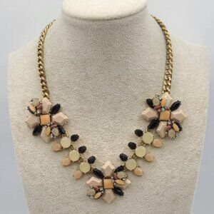 J Crew Vintage Gold Tone Pink Tan Black Resin Statement Necklace