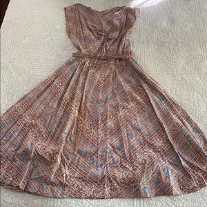 Chic green pea coat with a striking pink interior. Features a double-breasted design and elegant button details. Cotton panel has been added to lining for added detail. Measures 18” across chest, 16” shoulders, 17” waist, 12.5” shoulder to waist, 25” sleeves, and 23” waist to hem.