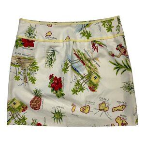 J. Crew Vintage Hawaiian Mini Skirt 4 Cream Tropical Hawaii Luau Resortwear