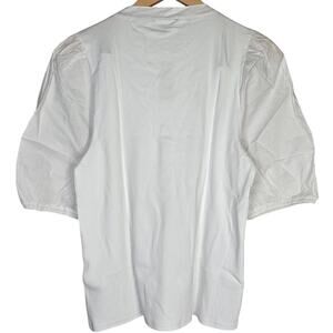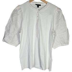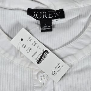 J. Crew Vintage rib puff-sleeve henley top L White BQ896