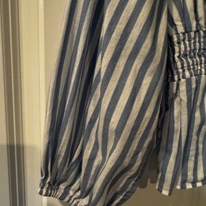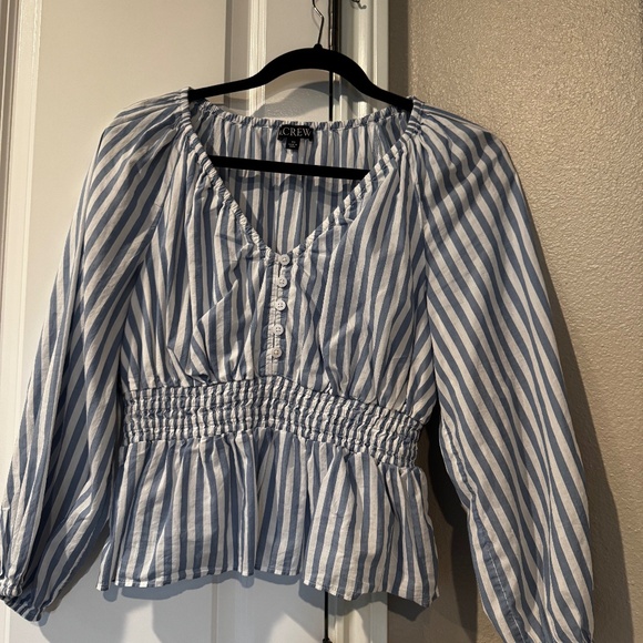 J. Crew V-neck Smocked Waist Top, Size extra small, black and white stripes