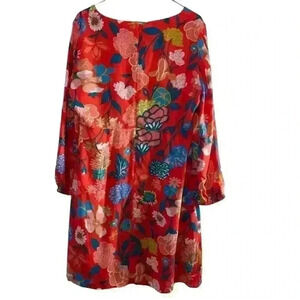 J Crew Vneck Soft Mini Dress In Floral Red Jade