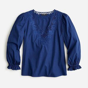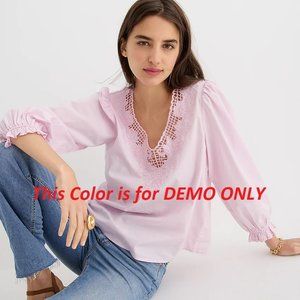 We always love a feminine top that adds a touch of romance to your everyday outfit. This pick features eyelet trim around the neck for an extra-elegant look. By buying cotton products from J.Crew, you're supporting our investment in Better Cotton's mission to help cotton communities survive and thrive while protecting and restoring the environment. This product is sourced through a system of mass balance and therefore may not contain Better Cotton.