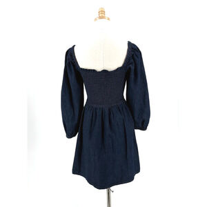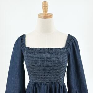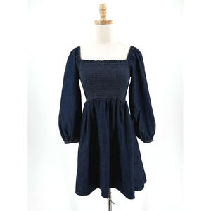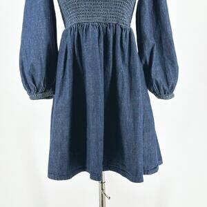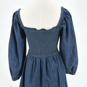 J Crew WOmens Smocked Puff Sleeve Denim Dress Small Preppy Coastal Peasant