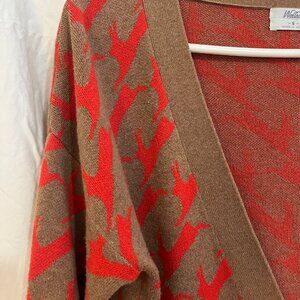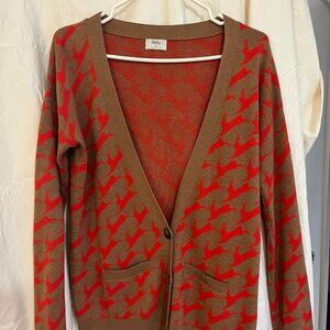 J Crew Wallace Small Wool Blend Orange Brown Cardigan w Rabbit Theme (S)