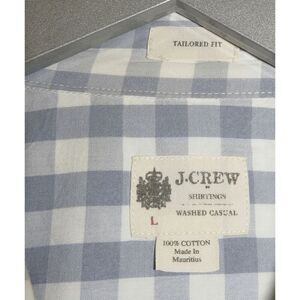 J. Crew Washed Casual Blue/Gray Gingham Check Tailored Fit Shirt Sz L