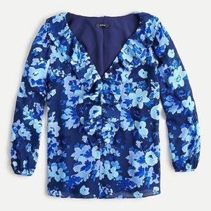 J. Crew | Watercolor Floral Ruffle Neckline Blouse