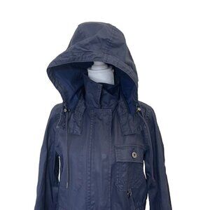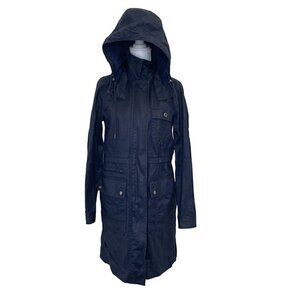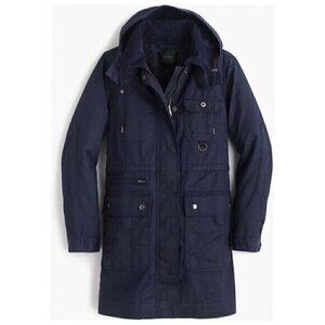 J. Crew Wax Coated Long Hooded Field Military Jacket Navy Blue size XS
