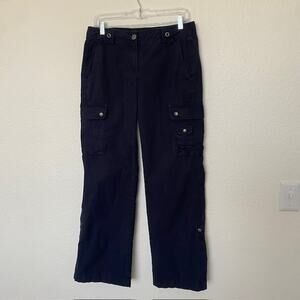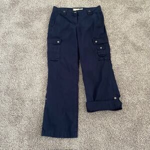 Chinos. Cargo. Cropped. Capri. Weathered. Cotton. Adjustable Hems. Navy Blue.