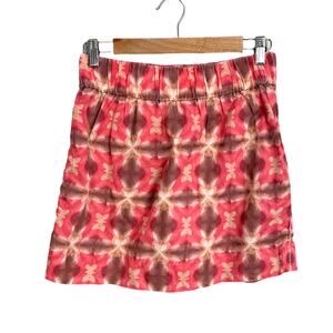 J Crew Wednesday Tie Dye Mini Skirt Ikat Print Pull On Silk Linen 2 XS