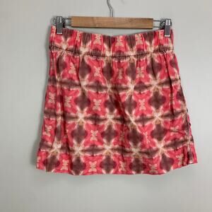 J Crew Wednesday Tie Dye Mini Skirt Ikat Print Pull On Silk Linen 2 XS Extra Small