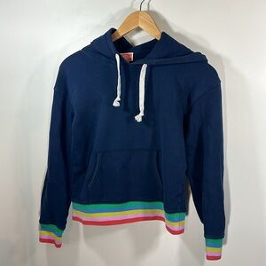 J. Crew Weekend Rainbow Terry Striped Hem Cuff Navy Hoodie Woman's XS Nautical