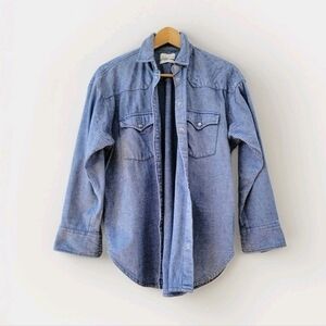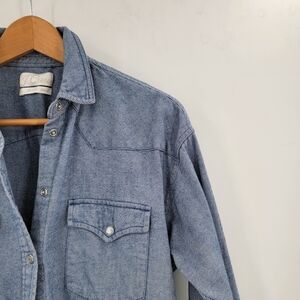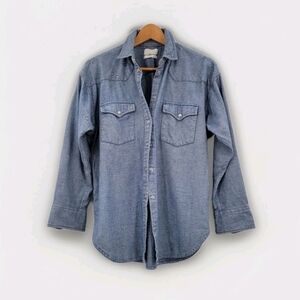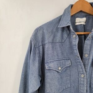 J.Crew Western Shirt Relaxed Fit Indigo Flannel Pearl Snap Buttons Top Women's 4 Blue Oversized Boho Minimalist