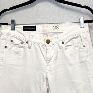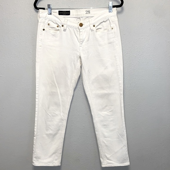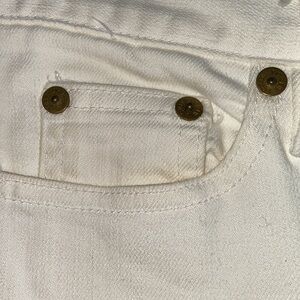 Stylish white ankle cropped pants. Classic design with button closure. Perfect for summer wear.