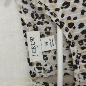 J Crew White Beige Cheetah Print Cap Sleeve Blouse Size Medium New with Tags