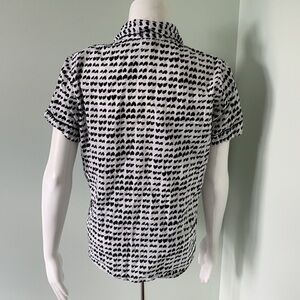 Short sleeve cotton button down pajama shirt with pocket. White with black hearts. Excellent preowned condition.