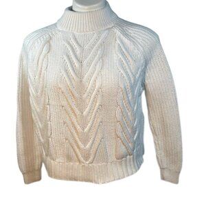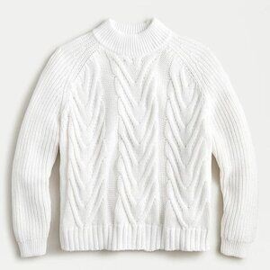J. Crew White Chunky Cotton Cable Knit Mock Neck Sweater XXS