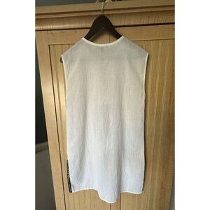 J Crew White Cotton Swim Cover Up Sz XXS V Neck Gauzy Navy Blue Trim Tie Tassels