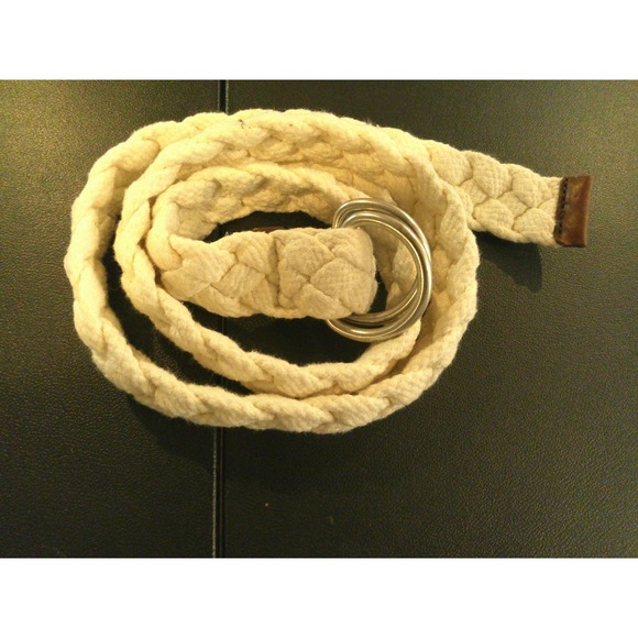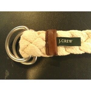 J Crew White D Ring Synthetic Blend Woven Fabric Rope Belt 40 Inch Long Nautical