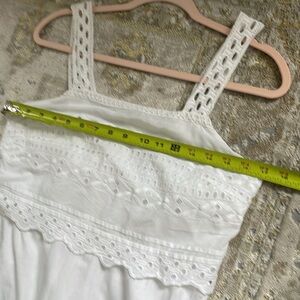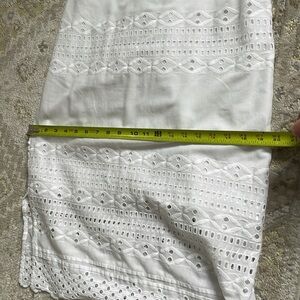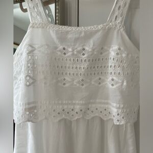 Beautiful white midi length dress with eyelet details from J.Crew. Zips at the back. Small slit at the side. Lined. Excellent condition. Size 4.