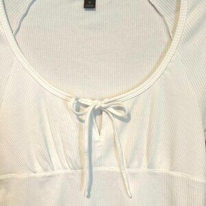 A feminine upgrade to the white tee, this white, fitted, ribbed top from J.Crew is the perfect addition to your wardrobe. Size Medium.