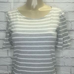 J. Crew White Gray Pullover Striped Bell Ruffled Short Sleeves Mini Dress XS
