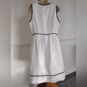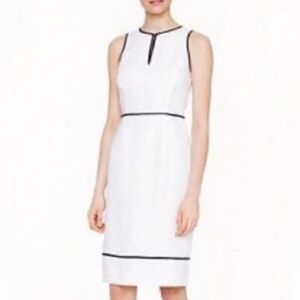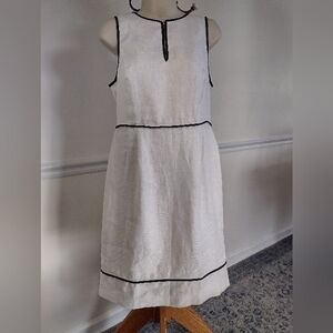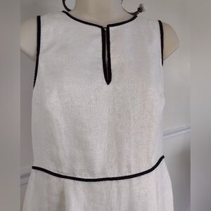J. Crew White Linen Black Piping Sheath Dress Sleeveless Crew Neck Midi size 8