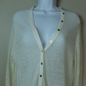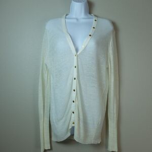 J Crew White Linen Lightweight V Neck Cardigan Size Large