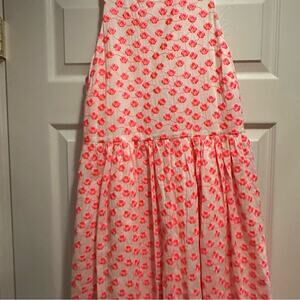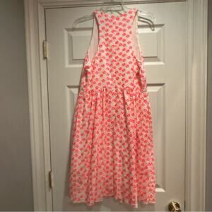J. Crew White Neon Pink Embroidered Floral Racer Dress A5586 Size 10 Fit Flare