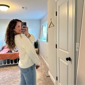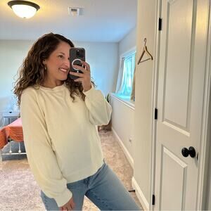 J. Crew White Neutral Cotton Cashmere Crewneck Sweatshirt Sweater Medium