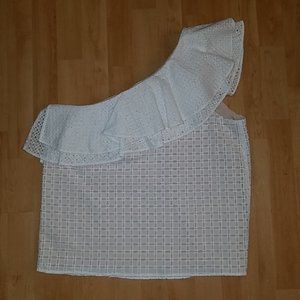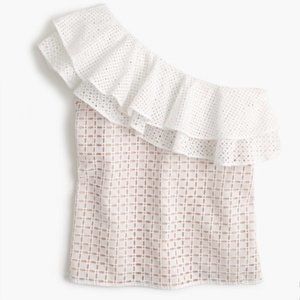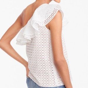 J Crew White One Shoulder Ruffle Eyelet Blouse Top