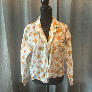 J. Crew White Orange Print Sleep Top