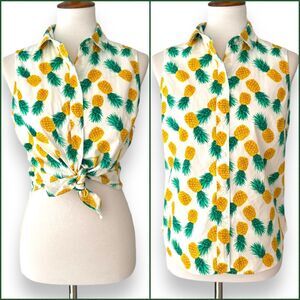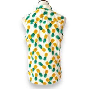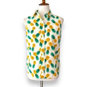 J. Crew White Pineapple Print Sleeveless Button Up Blouse Top Size Medium