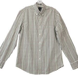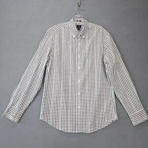 J Crew White Plaid Button Down Shirt Slim Fit Stretch Flex Wash Men's Size M Top