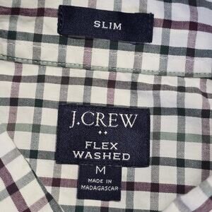 J. Crew White Multicolor Plaid Classic Button Down Shirt Slim Fit 2% Stretch Flex Wash Men's Size M Top Lightweight Long Sleeves Pocket