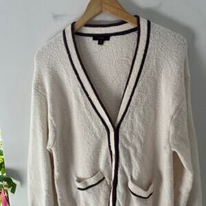 J. Crew White & Purple Bouclé Cardigan Sweater Size Medium