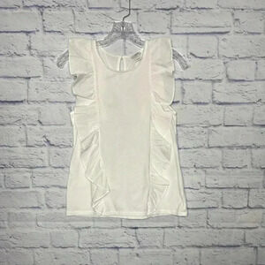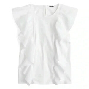 J. Crew White Ruffle Front Casual Sleeveless Top