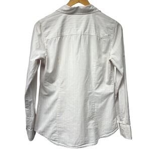 J Crew White Vertical Pastel Pinstripes Button Up Cotton Blouse Sz Small Medium