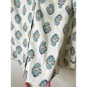 Stylish J. Crew blouse with floral pattern. Features blue flowers on a white background. Long sleeves and button-up front. Like new!