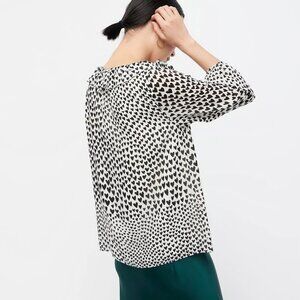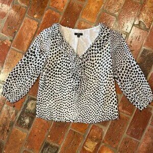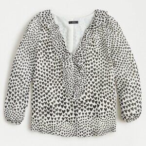 J. Crew White w/ Black Hearts Print Ruffled V-Neckline szXS