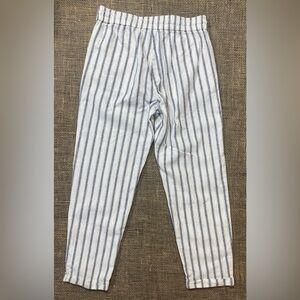 J. Crew White with Navy Blue Striped Cropped Pants, Size 2, Linen/Cotton Blend