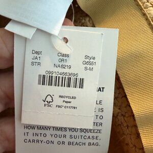 J. Crew Wide Brim Packable Straw Raffia Hat Natural Travel Vacation S/M