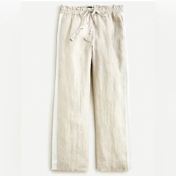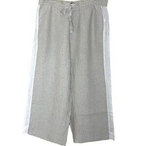 J. Crew Wide Leg Crop Linen Pants Large Flax Pull on Elastic Waist Drawstring