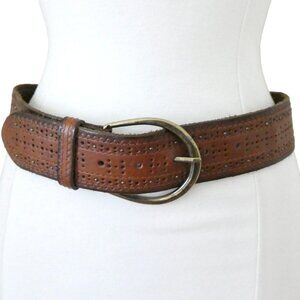 J. Crew Wide Waist Belt Cognac Brown Double Buckle Western Boho Leather Small