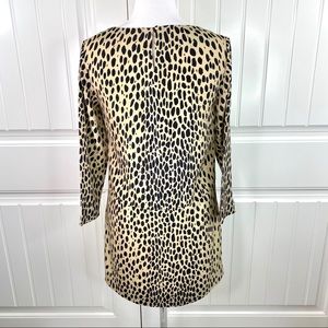 J. Crew tan black spotted cheetah print dress. 3/4 sleeves. Short. Round neckline. Keyhole back. Front slip pockets. Lined.