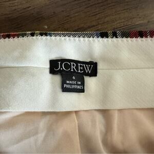 J. Crew Willa Cropped Flare Pants in Snowy Stewart Tartan Wool in a size 6. High rise. Zip fly with metal slide and concealed button closure. Two front and two back pockets, still sewn shut. Lined. 66% wool, 29% polyester, 5% elastane. Measures approximately 15” flat lay waist, 11” rise, and 24” inseam. In great condition.