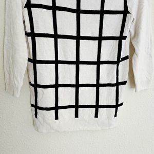 J Crew Window Pane Merino Wool Sweater Womens Size S 3/4 Sleeve White Black