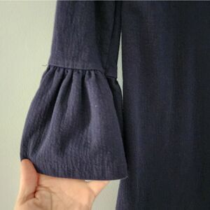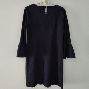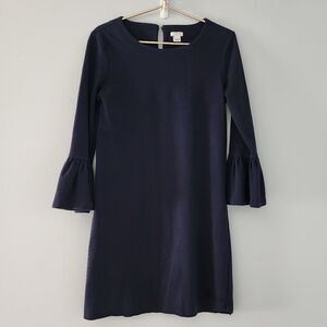 J. Crew Winter Garden Cocktail Dress Bell Sleeves Black Silky Size Small Blue