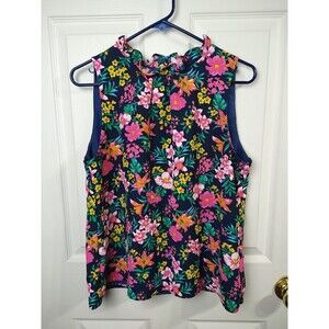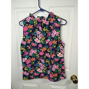 J. Crew Woman M High Ruffle Neck Floral Sleeveless Tank Keyhole Pullover