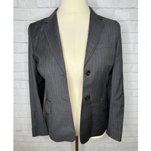 J. Crew Womans 12 English Wool Two Button Blazer Pin Striped Jacket Dark Gray